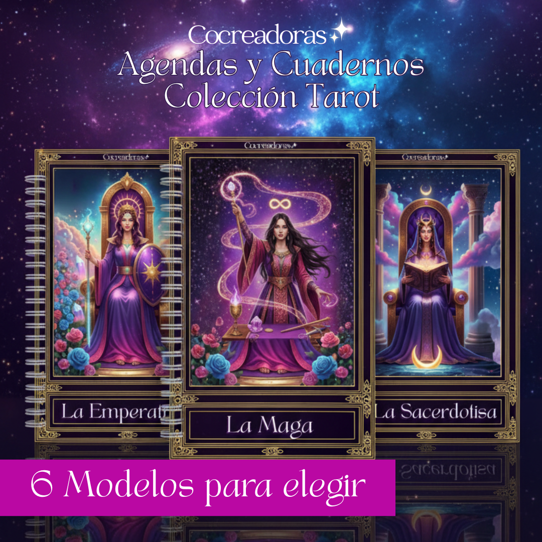 Cuadernos y agendas con arte vinculado al tarot y sus arquetipos. Una colección que combina estética mística con un toque introspectivo y simbólico.