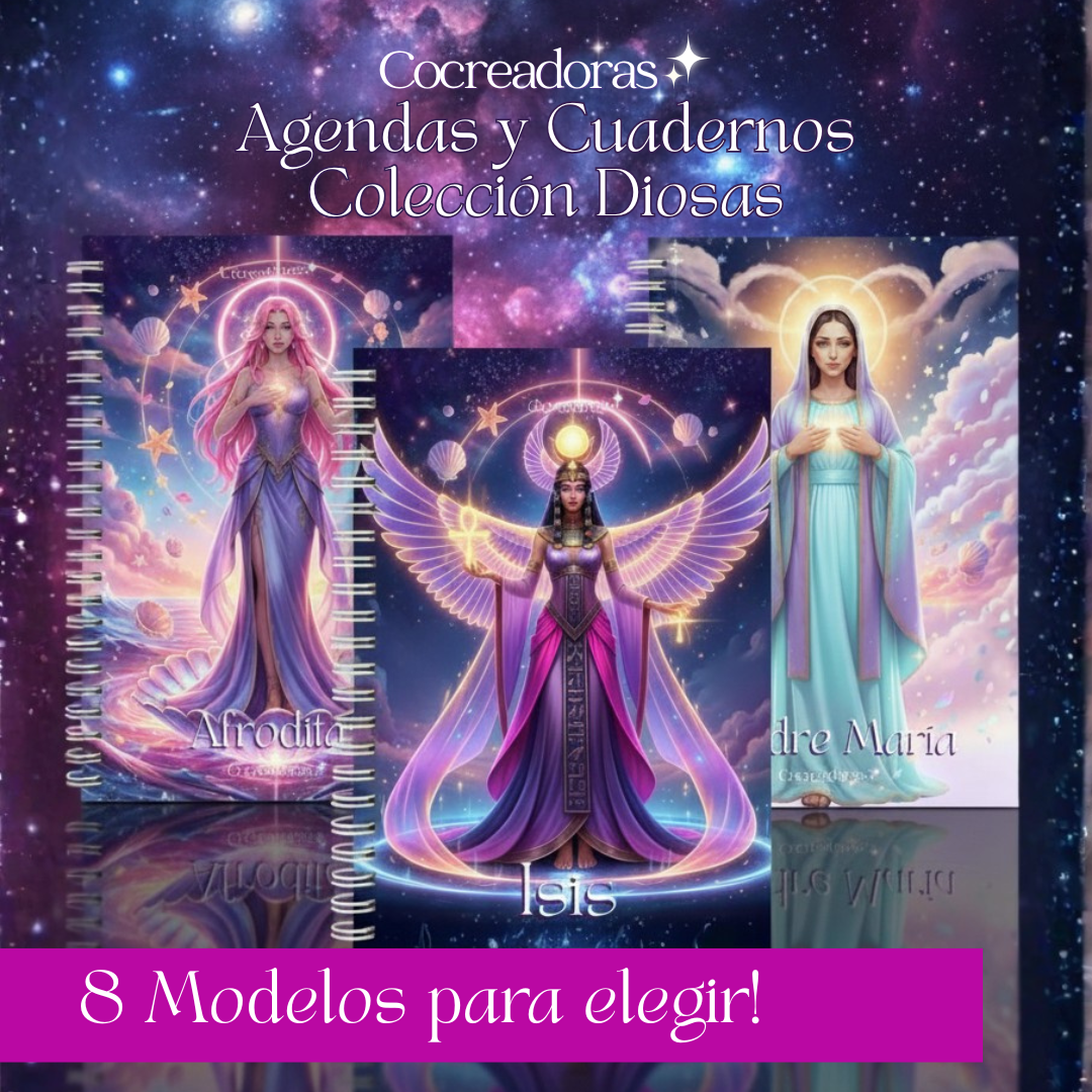 Diseños que celebran lo femenino, lo sagrado y lo intuitivo. Cuadernos y agendas que evocan la fuerza suave y la sabiduría de las diosas.